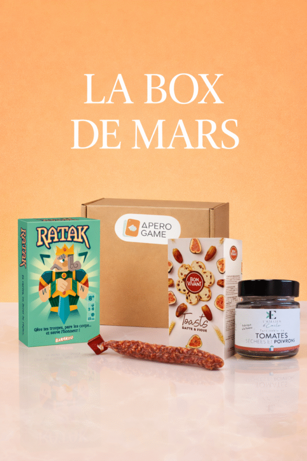 Tu choisis ton jeu de société préféré, et nous l’accompagnons d’une sélection de produits apéritifs artisanaux, soigneusement choisis pour un apéro réussi. Le tout est réuni dans une box prête à être ouverte… et dégustée 📦